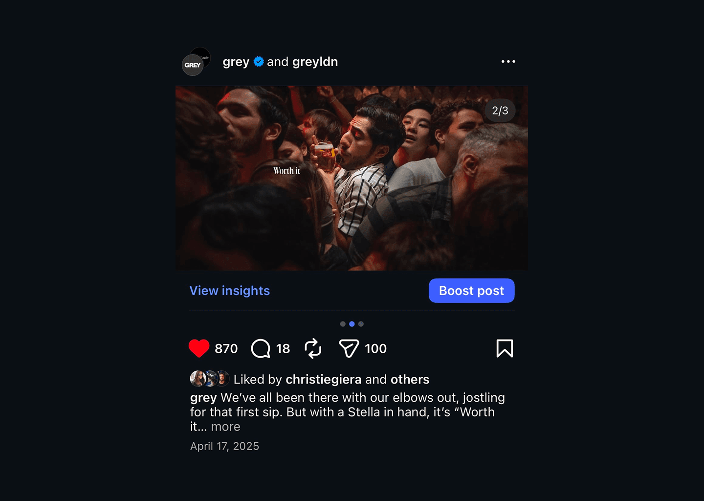 Led copy adaptation and publication for Grey’s global social channels (Instagram, LinkedIn) and Grey.com as part of the Claustrobars campaign, originally developed by Grey’s creative team for a client brand. Adapted tone for channel-specific audiences, selected hashtags, and ensured strict alignment with Grey’s brand voice.