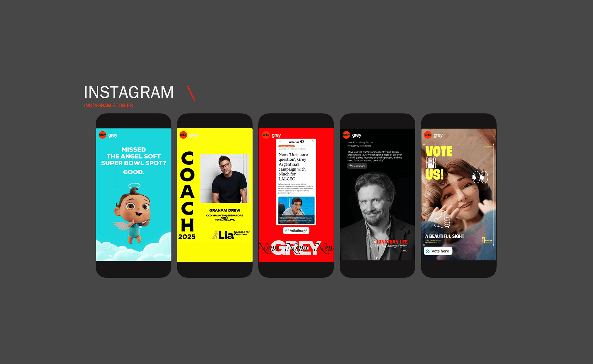 Developed comprehensive brand and social media guidelines for Grey studios worldwide to align on visual standards, tone, and content presentation — ensuring consistency across all offices and channels.